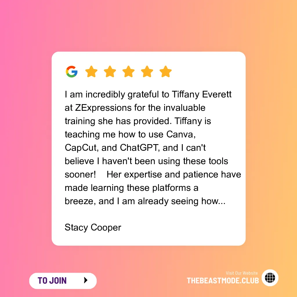 You’ll get direct access to weekly mentorship from Tiffany, ongoing group business coaching, exclusive networking and event access, and unlimited access to Tiffany's top business growth resources and strategies on-demand.